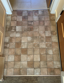 The left photo is our new living room carpet. We have a second one, similar but with a different pattern, under our dining room table. The right photo is the new tile. The bamboo flooring (seen at the bottom of the photo) that was in that area always swelled up certain times of the year making an irritating hump.